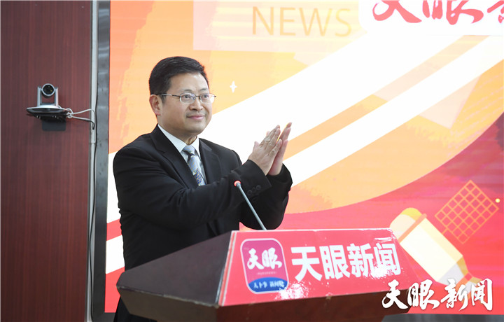 省委常委、省委宣传部部长慕德贵出席上线仪式并讲话。省委宣传部副部长、省委网信办主任、省新闻出版局局长谢念为“天眼大学”授牌。