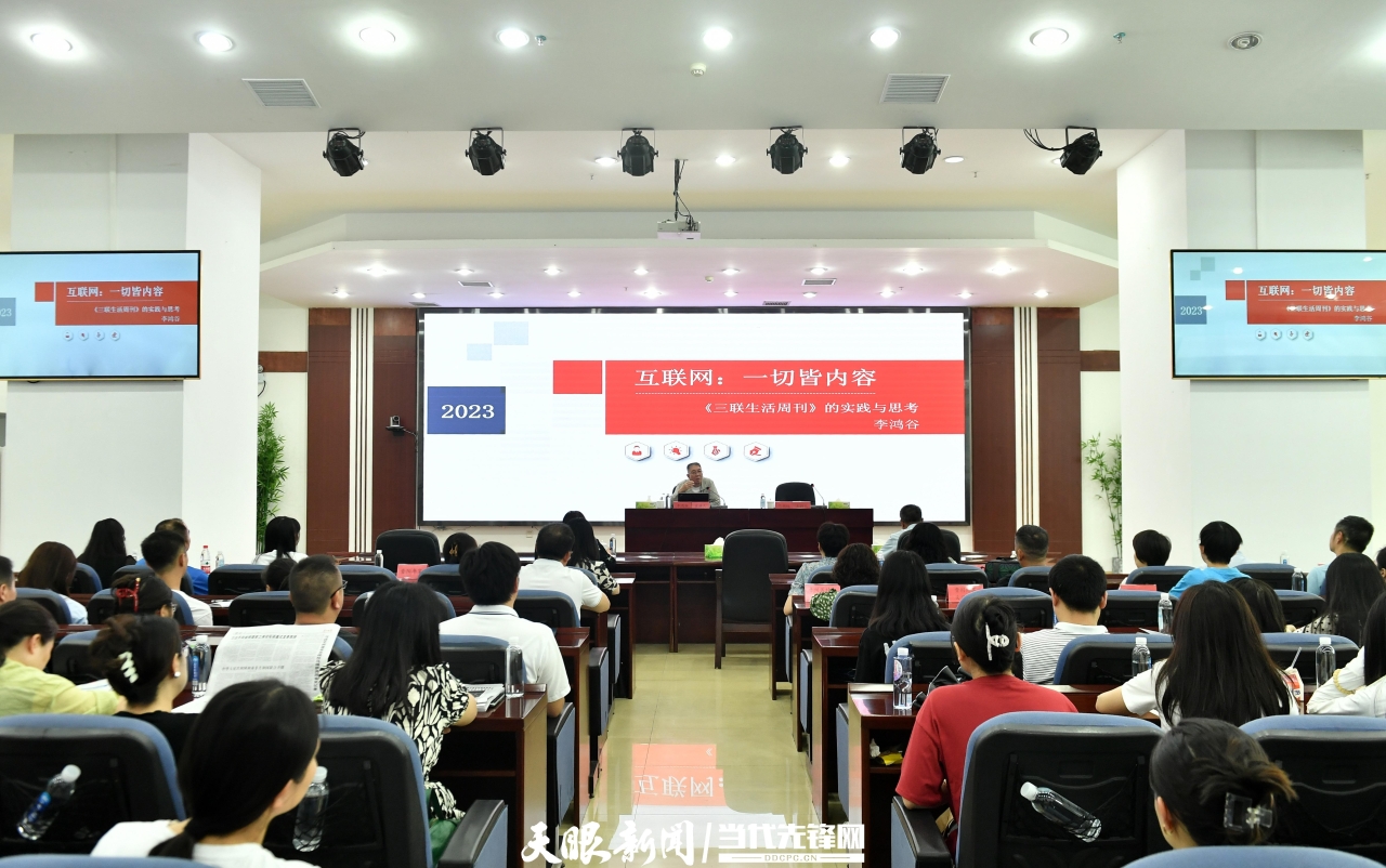 8月23日上午,贵州新闻传播与全媒体人才基地、天眼大学举办《互联网:一切皆内容》专题讲座,资深媒体人、三联生活传媒总经理、《三联生活周刊》主编李鸿谷带来了关于媒体融合发展创新的分享。