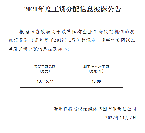 2021年度工资分配信息披露公告